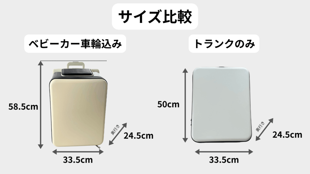 ベビーカー(持ち手)も合わせると、高さが少しオーバーしてしまいますが、航空会社によってはOKの場合もあります。