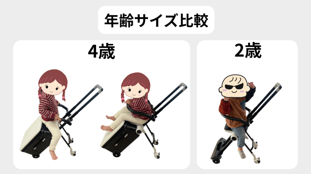 4歳の子どもを乗せた使用例では、前向きや後ろ向きのどちらでも意外と安定して座れていました。