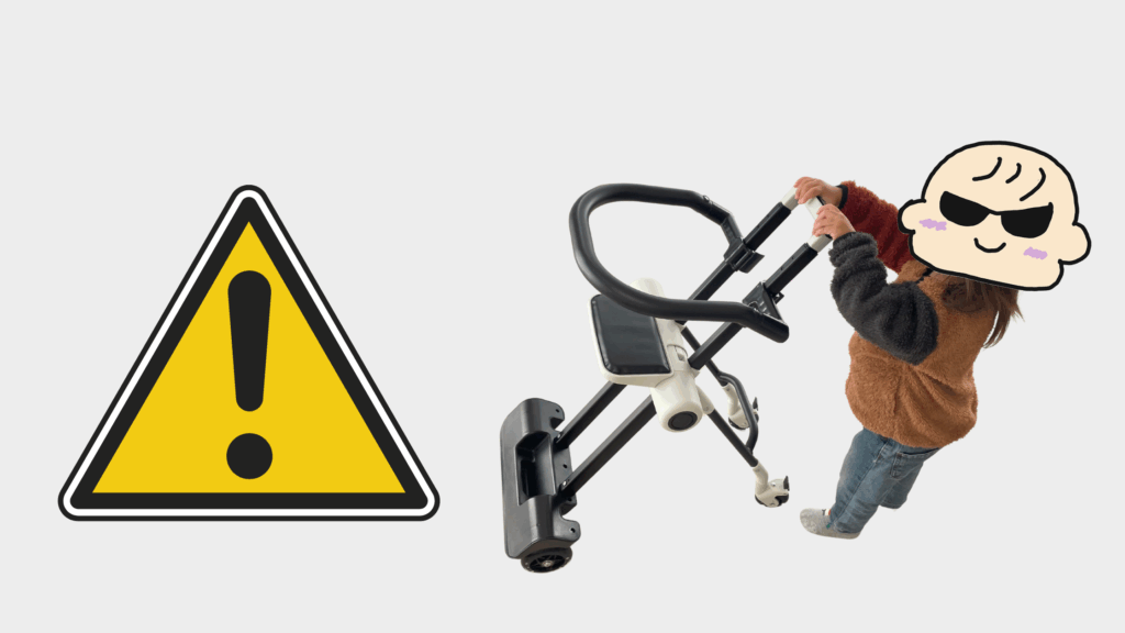 しかし、キャリーケース部分を取り外してベビーカー部分のみで使用する場合、本体が軽くなるため、子どもだけで操作すると倒れかける危険があります。