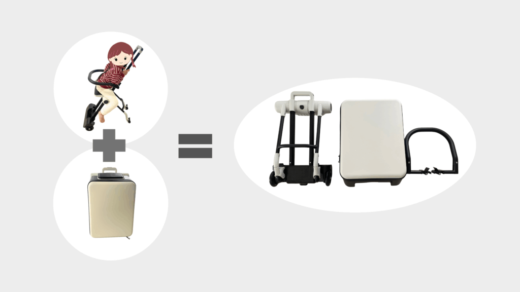 合体時は子どもが乗れるキャリーケースとして、分離すればスーツケースとベビーカーとして使用でき、旅行先では荷物を置いてベビーカー部分だけで移動できる設計です。